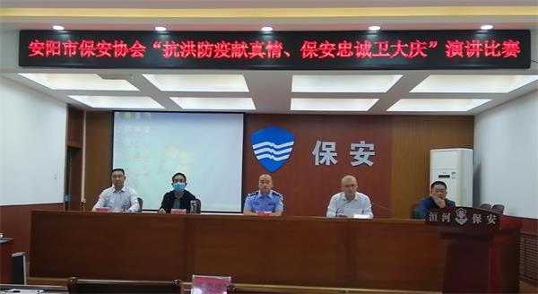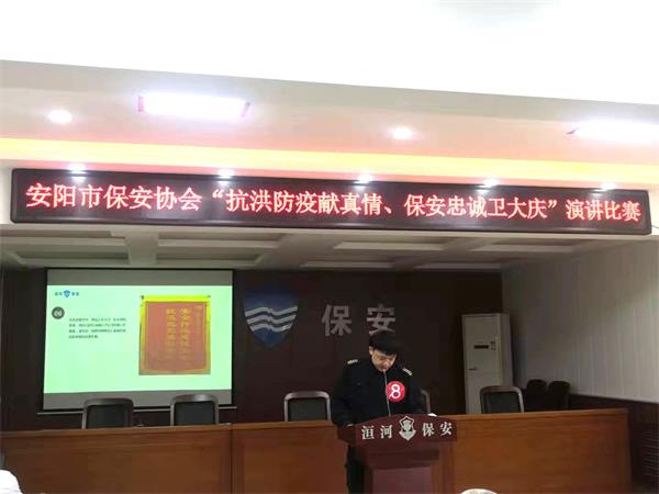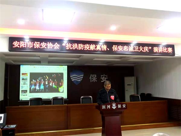 今年欣逢中國共產(chǎn)黨建黨100周年和中華人民共和國成立72周年。今年盛夏,中原大地遭遇多日的極端強(qiáng)降雨天氣和疫情蔓延的威脅。在這場抗洪搶險保衛(wèi)戰(zhàn)和疫情防控阻擊戰(zhàn)中,安陽市保安系統(tǒng)涌現(xiàn)出了許多可歌可泣的先進(jìn)典型。為喜迎國慶、激勵斗志,弘揚隊伍正能量,安陽市公安局保安監(jiān)管隊和安陽市保安協(xié)會籌劃、組織了此次演講比賽。