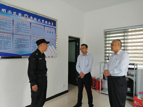 上午8時(shí)許,公司領(lǐng)導(dǎo)班子首先來(lái)到公司聯(lián)網(wǎng)報(bào)警指揮中心,看望了值班的同志,詢問(wèn)了聯(lián)網(wǎng)報(bào)警系統(tǒng)運(yùn)行情況。隨后,分為三組,分別到特保大隊(duì)中國(guó)文字博物館、殷墟博物苑,人防殷都檢察院、聯(lián)通公司,守押一大隊(duì)、五大隊(duì)駐地,鼎誠(chéng)物業(yè)吉祥家園,技防國(guó)藥控股,藍(lán)盾駕校、鼎信公司,對(duì)堅(jiān)守在工作崗位的員工進(jìn)行了慰問(wèn)。每到一處,公司領(lǐng)導(dǎo)都會(huì)詳細(xì)詢問(wèn)員工生活和工作情況。王高峰在聯(lián)通公司崗點(diǎn),詢問(wèn)了文明標(biāo)準(zhǔn)崗創(chuàng)建情況,鼓勵(lì)他們積極創(chuàng)優(yōu)爭(zhēng)先;在守押一大隊(duì)駐地,聽取了石培瑞到任后的工作進(jìn)展、車況和運(yùn)行、隊(duì)員作息情況,瀏覽了隊(duì)務(wù)公示欄,還饒有興致地參觀了院內(nèi)的小菜園,叮囑一定要把隊(duì)員生活搞好,還可以開展豐富多彩的文體活動(dòng),增強(qiáng)隊(duì)伍的凝聚力和戰(zhàn)斗力。在吉祥家園,王高峰一行認(rèn)真聽取了項(xiàng)目負(fù)責(zé)人的匯報(bào),對(duì)鼎誠(chéng)物業(yè)的工作提出了許多指導(dǎo)性意見。