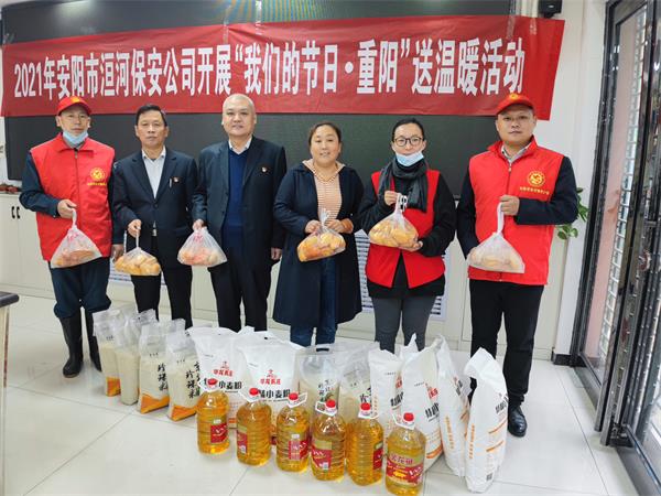 九九重陽節(jié) 濃濃敬老情。10月14日上午,公司黨委委員、副總經(jīng)理魏東冒雨帶領志愿者們前往盤庚中社區(qū),開展“我們的節(jié)日·重陽”送溫暖活動,為老人們帶去了米、面、油和蛋糕等慰問品,送上了對老人的關懷之情。