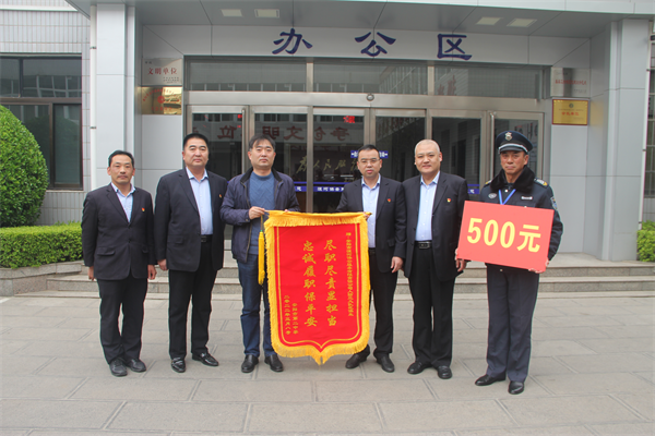 今年,在抗擊新冠病毒肺炎疫情的戰(zhàn)斗中,為了維護(hù)校園安全,人防三大隊(duì)隊(duì)員范保生恪盡職守,付出了極大的辛苦和努力,為學(xué)校疫情防控和安全保衛(wèi)工作做出了重要貢獻(xiàn)。為了鼓勵(lì)先進(jìn),樹立表率,3月30日下午,市第二高級(jí)中學(xué)校長康錦光,將印有“盡職盡責(zé)顯擔(dān)當(dāng)忠誠履職保平安”的錦旗送到了公司并獎(jiǎng)勵(lì)范保生獎(jiǎng)金500元。