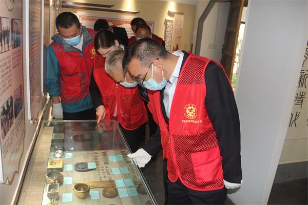 志愿活動(dòng)結(jié)束后,王高峰帶領(lǐng)全體志愿者們參觀了北花村黨史館、村史館、古炮樓和其他文明單位援建的項(xiàng)目,通過文字、圖片、實(shí)物等方式,結(jié)合老地圖、老物件生動(dòng)展示了北花村的歷史變遷、風(fēng)土人情和動(dòng)人故事。
