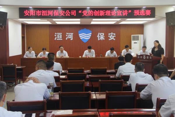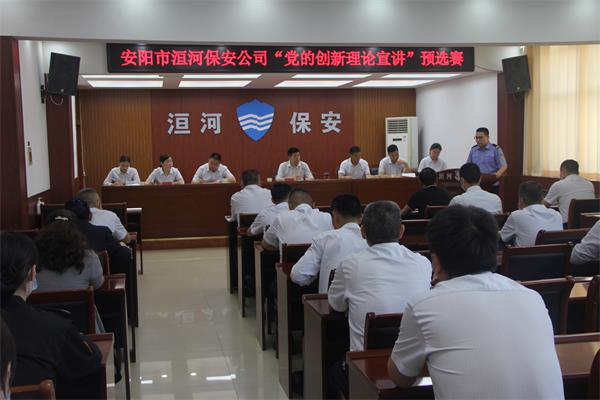 為深入學(xué)習(xí)貫徹習(xí)近平新時代中國特色社會主義思想和黨的十九大及歷次全會精神,推動黨的創(chuàng)新理論入腦入心,團(tuán)結(jié)引領(lǐng)廣大職工堅(jiān)定跟黨走、建功新時代,激勵全體洹河保安人以更加昂揚(yáng)的精神狀態(tài)迎接黨的二十大勝利召開,2022年5月19日下午,公司黨委舉辦“黨的創(chuàng)新理論宣講”預(yù)選賽,黨委書記、董事長、總經(jīng)理王高峰,黨委委員、副總經(jīng)理魏東到會觀摩,比賽由黨委副書記張錫軍主持。
