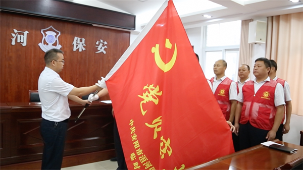 會(huì)上,公司黨委副書記、監(jiān)事長張錫軍宣讀關(guān)于成立臨時(shí)黨支部的決定。下沉干部臨時(shí)黨支部書記馮文峰作表態(tài)發(fā)言,表示要發(fā)揚(yáng)臨時(shí)黨支部戰(zhàn)斗堡壘作用,發(fā)揮黨員先鋒模范作用,堅(jiān)決完成黨委交給的任務(wù)。接著,王高峰為下沉干部臨時(shí)黨支部授旗。全體下沉干部對(duì)著鮮艷的黨旗莊嚴(yán)宣誓:我志愿加入黨員突擊隊(duì),堅(jiān)決做到服從命令、聽從指揮,排除萬難、不怕犧牲,齊心協(xié)力,勇克難關(guān),為洹河保安爭光添彩。