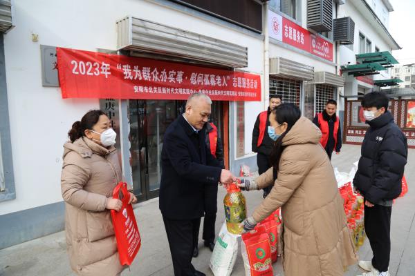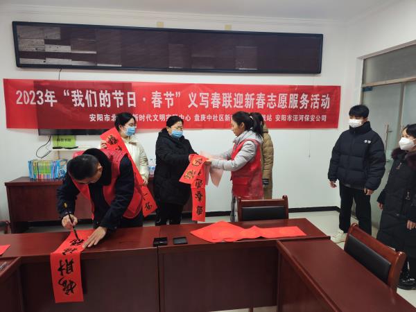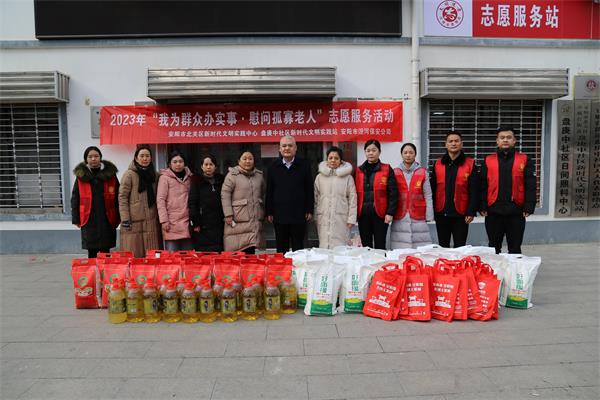為進一步了解基層群眾的需求,切實解決他們在生活中的實際問題,讓他們度過一個溫暖、祥和、快樂的新春佳節(jié)。1月17日下午,公司總經(jīng)理魏東帶領志愿者帶著米、面、油、春聯(lián)等深入盤庚中社區(qū)開展了“義寫春聯(lián)迎新春”暨“我為群眾辦實事慰問孤寡老人”志愿服務活動。