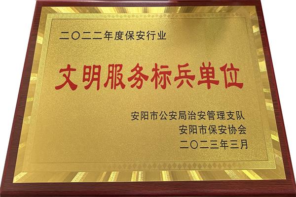5月30日下午,安陽(yáng)市保安協(xié)會(huì)召開(kāi)2022年度總結(jié)表彰大會(huì),公司被評(píng)為“安陽(yáng)市保安行業(yè)文明服務(wù)標(biāo)兵單位”,其中公司守押一大隊(duì)、華潤(rùn)燃?xì)庥邢薰颈0矋彽?個(gè)崗點(diǎn)被安陽(yáng)市保安協(xié)會(huì)評(píng)為“文明示范崗”,公司楊國(guó)慶、李志勇等17名同志被安陽(yáng)市保安協(xié)會(huì)評(píng)為“優(yōu)秀保安員”,公司張運(yùn)洲同志榮獲安陽(yáng)市保安協(xié)會(huì)“喜迎黨的二十大 保安護(hù)航新征程”征文比賽一等獎(jiǎng)。