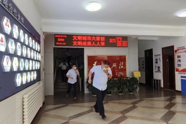 隨著急促的警報(bào)聲響起,消防演練拉開序幕。所有職工有序開展逃生活動(dòng),用濕毛巾捂住口鼻,低頭彎腰,按路線向應(yīng)急疏散口疏散。全體職工在一分多鐘內(nèi)迅速撤離至安全區(qū)域。