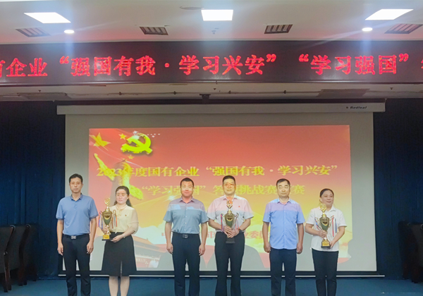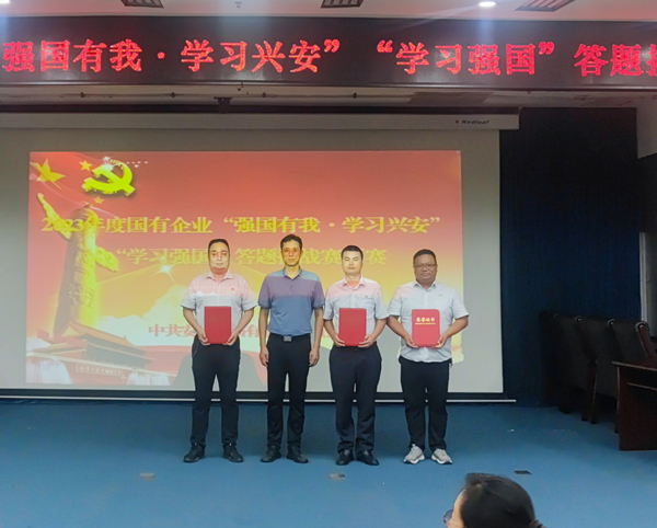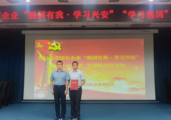 2023年8月4日,市國企黨委舉辦2023年度國有企業(yè)“強(qiáng)國有我·學(xué)習(xí)興安”“學(xué)習(xí)強(qiáng)國”答題挑戰(zhàn)賽預(yù)賽,來自全市17家國有企業(yè)共50人參加比賽,公司黨委副書記、監(jiān)事長張錫軍帶隊(duì),由9名選手組隊(duì)代表公司參賽。經(jīng)過激烈角逐,公司以平均成績第一名榮獲優(yōu)秀組織獎(jiǎng),安大鵬榮獲個(gè)人一等獎(jiǎng),趙高飛、馮文峰、喬力榮獲個(gè)人二等獎(jiǎng),肖冬、聶紹軍榮獲個(gè)人三等獎(jiǎng)。