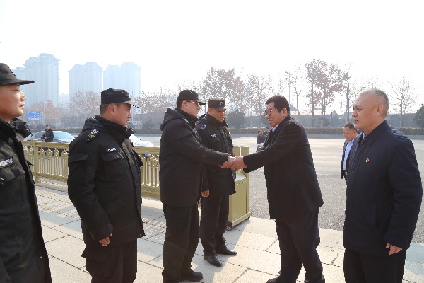 春節(jié)臨近,為體現(xiàn)對(duì)保安從業(yè)人員的關(guān)心和愛(ài)護(hù),切實(shí)做好生活困難保安員的扶困救助工作,提升保安員幸福感,促進(jìn)保安服務(wù)行業(yè)高質(zhì)量發(fā)展。2024年1月29日,河南省保安協(xié)會(huì)副會(huì)長(zhǎng)、鄭州市保安服務(wù)集團(tuán)董事長(zhǎng)王保友等人在市公安局治安管理支隊(duì)保安監(jiān)管隊(duì)長(zhǎng)齊超杰、公司總經(jīng)理魏東的陪同下,走訪慰問(wèn)公司一線(xiàn)保安人員,為他們送上關(guān)懷及新春祝福。