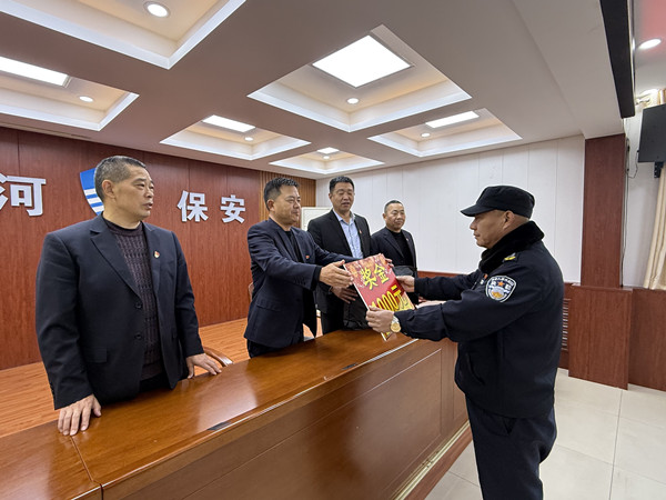 為表彰先進、樹立典型,進一步激勵廣大保安員勇于擔(dān)當(dāng)、積極作為,12月5日下午3:00,人防分公司在五樓會議室召開中隊長以上人員大會,對劉克平同志進行表彰。公司黨委委員、副總經(jīng)理孫國濤出席會議,并為劉克平同志頒發(fā)獎金1000元和執(zhí)勤服1套。