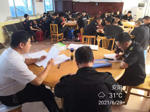 6月29日下午3時(shí)30分,守押七大隊(duì)聯(lián)社中隊(duì)在會(huì)議室召開慶祝建黨百年安全工作會(huì)議,副隊(duì)長管宇飛主持。會(huì)議要求全力以赴做好慶祝建黨百年期間的守押安全工作,為慶祝建黨一百周年?duì)I造良好氛圍。