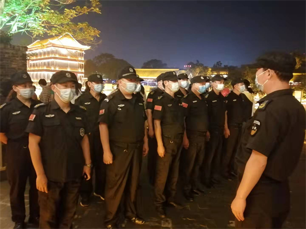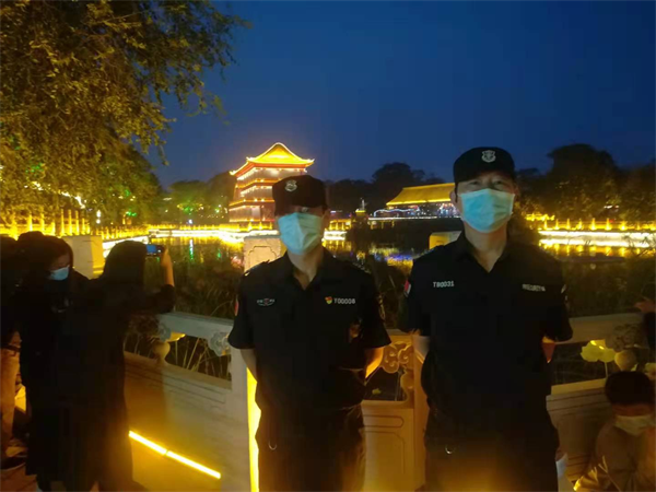 由于活動(dòng)在國(guó)慶節(jié)期間舉辦,又是安陽(yáng)古城倉(cāng)巷街網(wǎng)紅打卡地,逛街、游玩人員流量大的聚集區(qū)、人員復(fù)雜。為避免觀看區(qū)域人員發(fā)生擁擠、踩踏意外事故,人防五大隊(duì)會(huì)同人防分公司領(lǐng)導(dǎo)提前進(jìn)行兩次實(shí)地查看現(xiàn)場(chǎng),制定勤務(wù)方案、周密組織、精心部署,抽調(diào)有經(jīng)驗(yàn)的安保執(zhí)勤隊(duì)員參戰(zhàn),嚴(yán)格落實(shí)疫情防控措施,在安保工作中盡職履職,嚴(yán)格堅(jiān)持高標(biāo)準(zhǔn)和細(xì)致、精致的作風(fēng),樹(shù)好洹河保安形象。