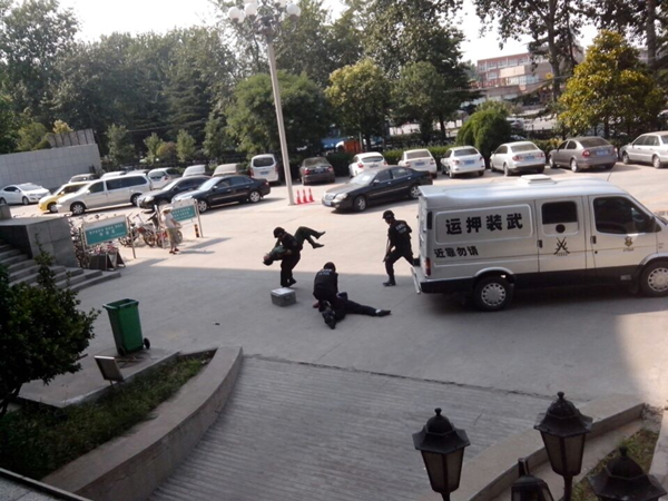 10月15日,守押二大隊(duì)在農(nóng)業(yè)銀行安陽(yáng)市行院內(nèi)開展了一次暴恐突發(fā)事件應(yīng)急演練暨消防安全培訓(xùn)。本次演練共設(shè)置兩個(gè)科目分別為:遭遇持械搶劫運(yùn)鈔車事件處置演練、消防器材實(shí)操及現(xiàn)場(chǎng)滅火應(yīng)急預(yù)案演練。