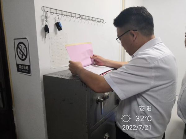 分公司領(lǐng)導(dǎo)張新平、韋洪東分別深入到七大隊的臨淇、建行、農(nóng)商行等中隊進行了工作檢查,在檢查中,他們統(tǒng)一檢查了各中隊的日常臺賬、車輛、守庫室等,詳細查看了隊員的學(xué)習(xí)記錄,查看了今年公司“以案促改、鄭州7.20災(zāi)害追責(zé)和能力作風(fēng)建設(shè)年”等方案的開展和轉(zhuǎn)段學(xué)習(xí)情況,檢查了防疫情況登記。在守庫室,不但查看了守庫室的各項設(shè)備及衛(wèi)生情況,還查看了押運登記本和槍支領(lǐng)取交接本的登記情況。張新平指出,對比上一次的例行檢查,整體工作有了很大的改觀,好的方面要保持下去,對于檢查出的短板,要盡快的整改,確保守押各項工作安全運行。