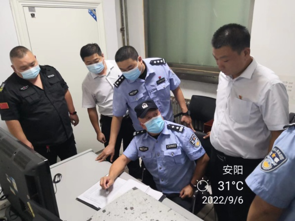 9月6日上午,安陽(yáng)市公安局治安支隊(duì)民警郭慶林、張濤一行在守押分公司領(lǐng)導(dǎo)韋洪東的陪同下,到七大隊(duì)檢查工作,大隊(duì)長(zhǎng)楊中朝全程陪同。