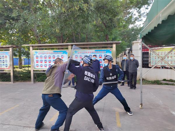 最后,袁學軍副校長對本次反恐防暴演練提出了表揚和肯定,他講到:本次演練很成功,場景很貼近生活,一切都是從實戰(zhàn)出發(fā),反映出了洹河保安的實力和專業(yè)性;整個演練過程緊湊,嚴肅而逼真,隊員配合默契,反映出了保安隊員過硬的軍事素質(zhì)和嫻熟的處突能力;感謝人防五大隊對學校安保工作的大力支持和各參演人員的辛苦付出,學校連年取得的區(qū)“平安校園”榮譽,離不開你們默默無聞的付出。同時,勉勵全體隊員繼續(xù)努力,堅守崗位,與學校廣大師生一起迎接二十大勝利召開,確保校園安全穩(wěn)定。