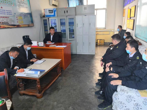11月1日上午10時,守押七大隊在大隊辦公室召開工作部署安排會議,中隊長以上人員參加會議。
