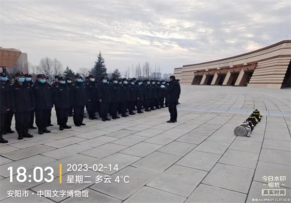 冬春交替,為有力遏制和預(yù)防火災(zāi)的發(fā)生,為進(jìn)一步加強(qiáng)隊(duì)員們的安全防火意識(shí),提升其在處理突發(fā)事件過程中的協(xié)調(diào)配合 能力,2月14日下午,特保大隊(duì)駐中國(guó)文字博物館中隊(duì)組織全體隊(duì)員開展了消防滅火演練。