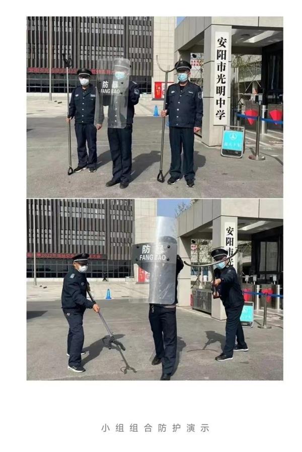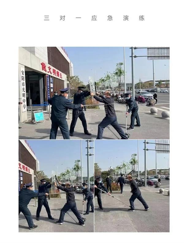 為切實(shí)提高校園安保防范能力,4月9日上午,人防三大隊(duì)派駐安陽市光明中學(xué)保安班開展安保防護(hù)技能培訓(xùn)暨實(shí)戰(zhàn)演練活動(dòng)。