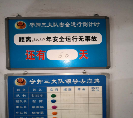 11月2日早7點20分,守押三大隊全員隊列整齊,在進行例行晨會。晨會上,大隊指著隊部門口懸掛的大隊安全運行倒計時警示牌指出,離全年過去還有不到60天,全體隊員要保持良好工作作風,繼續(xù)嚴守各項規(guī)章制度和守押安全操作指南,繼續(xù)嚴格遵守防疫措施,為安全順利完成全年大隊工作目標繼續(xù)努力。