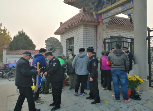 勤務(wù)實(shí)施期間,隊(duì)員們每天早六點(diǎn)即準(zhǔn)時(shí)進(jìn)入崗位,全力維護(hù)祭祀治安秩序。大家一面堅(jiān)持原則,依法依規(guī)文明執(zhí)勤,一面耐心給群眾做好宣傳解釋工作,避免祭掃人員不理解、不配合,導(dǎo)致事態(tài)升級(jí)。因反復(fù)提醒、竭力勸阻攜帶、燃燒紙帛現(xiàn)象,許多同志的嗓子發(fā)癢嘶啞,卻全然不顧。同時(shí),采取靈活機(jī)動(dòng)的工作方法,積極做好引導(dǎo),為行動(dòng)障礙的祭掃人員提供方便,受到群眾好評(píng)。