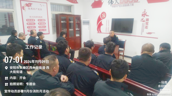 2024年11月9日是第33個(gè)全國(guó)消防日,守押一大隊(duì)積極響應(yīng)公司關(guān)于加強(qiáng)消防安全管理的指示精神,組織召開消防安全月動(dòng)員大會(huì),旨在全面提高全員消防安全意識(shí)和應(yīng)急處置能力,進(jìn)一步筑牢安全防線。