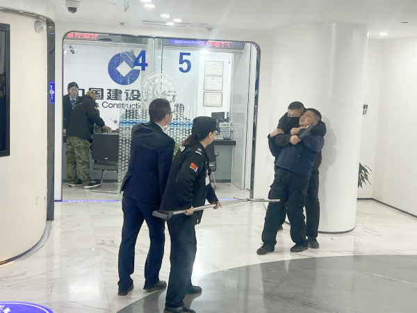 本次演練模擬了銀行員工在日常業(yè)務(wù)辦理過程中遇到歹徒搶劫的情景??蛻魝冋谟行蜣k理業(yè)務(wù),突然一名偽裝成普通客戶的“劫匪”手持兇器闖入大廳,企圖實(shí)施搶劫。面對這一突如其來的緊急情況,大堂經(jīng)理第一時(shí)間按下報(bào)警按鈕,并迅速通知安保部門報(bào)告情況。同時(shí),保持冷靜爭取時(shí)間等待警察到來。與此同時(shí),其他員工也迅速行動起來,有的則隱蔽地點(diǎn)記錄“劫匪”的動向,以便為后續(xù)提供好的線索。網(wǎng)點(diǎn)安保人員與“警方”保持緊密溝通,協(xié)助警方制定救援計(jì)劃。在警方的精心部署下,最終成功將“劫匪”制服并帶離現(xiàn)場。
