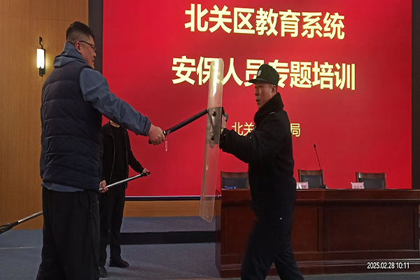 培訓(xùn)開班前,北關(guān)區(qū)教育局副局長崔麗娟首先做了動員,期望參訓(xùn)人員學(xué)有所獲,轉(zhuǎn)化為筑牢北關(guān)區(qū)校園安全防線的具體行動。楊承濤從事保安工作多年,有著豐富的校園安保經(jīng)驗(yàn)。在理論講授環(huán)節(jié),他圍繞校園保安職責(zé)及權(quán)限、工作注意事項(xiàng)、禮貌禮節(jié)與文明用語、人際關(guān)系處理等內(nèi)容展開詳細(xì)講解,強(qiáng)調(diào)校園保安不僅要有過硬的安保技能,還要注重服務(wù)態(tài)度,為師生營造安全又溫馨的校園環(huán)境。
