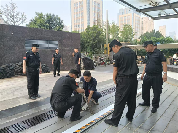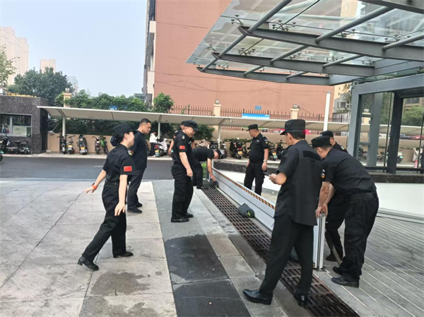此次演練模擬了暴雨導(dǎo)致雨水倒灌、地下停車場積水等險情。全體隊(duì)員迅速響應(yīng),按照預(yù)案分工協(xié)作,保安隊(duì)員第一時放置擋水板和堆砌沙袋,并將重要物資轉(zhuǎn)移安全。