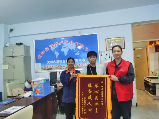 接到求助后,保潔人員詳細記錄了衣物的特征、晾曬時間及發(fā)現(xiàn)丟失的時間,并第一時間在可能掉落的區(qū)域展開細致查找。經(jīng)過多方努力,最終在10號樓南側的綠化帶中找到了業(yè)主丟失的衣物,并及時歸還。業(yè)主對物業(yè)高效、負責的工作態(tài)度表示高度認可,特意制作了一面寫有“盡心為業(yè)主 服務暖人心”的錦旗贈予物業(yè)服務中心,以表達誠摯感謝。