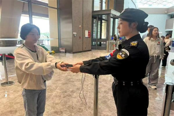 節(jié)日期間,特保大隊(duì)實(shí)行24小時(shí)輪班值守,全體隊(duì)員全情投入安保工作。一是嚴(yán)把入口關(guān)。安檢隊(duì)員嚴(yán)守各場(chǎng)館入口安檢關(guān)口,細(xì)致排查易燃易爆、管制刀具等違禁物品。僅殷墟博物館、中國(guó)文字博物館、漢字公園3處,日均完成超4萬余人次安檢,精準(zhǔn)攔截多起違禁品,筑牢“危險(xiǎn)物品不入園”的堅(jiān)實(shí)防線。二是強(qiáng)化內(nèi)部巡邏。館內(nèi)隊(duì)員加密巡邏頻次,既重點(diǎn)盯防文物展柜等安全要害,又聚焦客流易聚集區(qū)域。實(shí)時(shí)疏導(dǎo)擁擠人群,有效防范各類安全風(fēng)險(xiǎn)。三是維護(hù)現(xiàn)場(chǎng)秩序。游客熱點(diǎn)區(qū)域,隊(duì)員遇人員飽和時(shí),及時(shí)引導(dǎo)游客分批次有序游覽,保障良好秩序。四是提供暖心幫助。特保隊(duì)員專注引導(dǎo)行人安全通行。遇到老年游客或攜帶重物的游客,主動(dòng)上前攙扶、協(xié)助搬運(yùn)行李,以貼心舉措傳遞安保溫度。