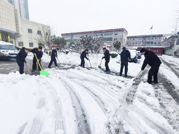 面對突如其來的冰雪天氣,大隊全體隊員自發(fā)提前到崗。天還未亮,大家便頂著凜冽寒風(fēng),拿起鐵鍬、掃帚等工具,對單位院內(nèi)及周邊的主要通道、出入口等重點區(qū)域的積雪進行全面清掃。隊員們分工明確、配合默契,有的奮力鏟除厚實積雪,有的細心清掃殘留冰雪,經(jīng)過一個小時的奮戰(zhàn),成功開辟出一條條安全通暢的“綠色通道”,有效消除路面濕滑安全隱患,保障了早間勤務(wù)出行安全有序。