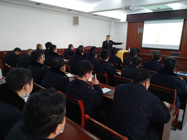 2021年1月5日下午,守押六大隊(duì)組織隊(duì)員聆聽(tīng)消防安全知識(shí)講座,安陽(yáng)市社安消防科技有限公司教官馬曉主持講座。
