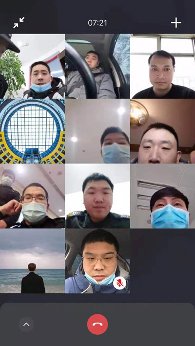 臨近年關(guān),公司和大隊(duì)的各項(xiàng)工作要求急需傳達(dá)到基層,讓隊(duì)員了解。然而,鑒于防控疫情的需要,不適合召集隊(duì)員聚集開(kāi)會(huì),特保隊(duì)派駐招商銀行保安班就想到利用網(wǎng)絡(luò)平臺(tái)召開(kāi)視頻班會(huì)。于是, 1月25日19時(shí),隊(duì)員約好上線,召開(kāi)了這次班會(huì)。會(huì)上,班長(zhǎng)傳達(dá)了公司《關(guān)于進(jìn)一步加強(qiáng)疫情防控工作的通知》文件精神,要求隊(duì)員增強(qiáng)“四個(gè)意識(shí)”,提高政治站位,做到非必要不聚集、不聚會(huì)、減少人員會(huì)面,工作不落下,防疫不放松,確保隊(duì)員身體健康,生命安全。