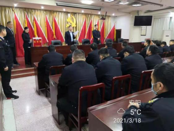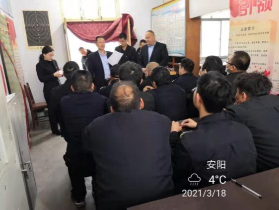 3月18日上午,公司考核組庫擁軍、翟新杰、楊曉一行蒞臨守押七大隊(duì),開展2020度中層干部考評工作。
