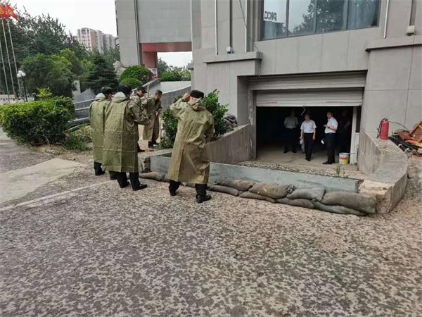 隊(duì)員們快速穿上雨具,對(duì)阻塞排水口進(jìn)行疏通,并將一袋袋沙袋堵住各個(gè)入口,防止雨水滲進(jìn)入地下金庫(kù)、車庫(kù)。與此同時(shí),隊(duì)員組織營(yíng)業(yè)大廳內(nèi)人員的疏散和撤離到安全地帶。