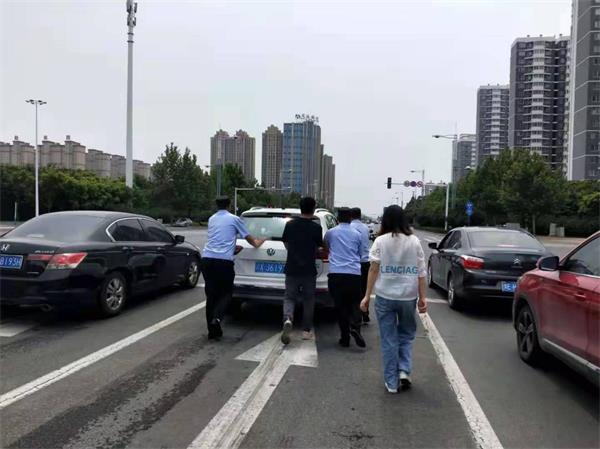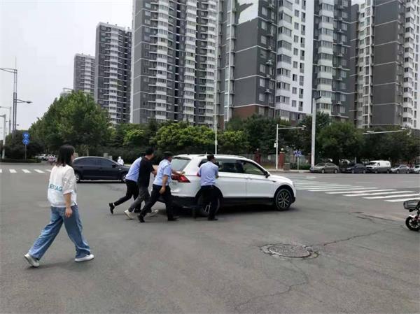 隊(duì)員馬上停車上前了解情況,原來女同志是個新手,因汽車出現(xiàn)故障無法啟動。了解情況后,隊(duì)員給司機(jī)講了車輛停在馬路中間的危險性,同時組織隊(duì)員幫助其將汽車推到安全地段,等待救緩。