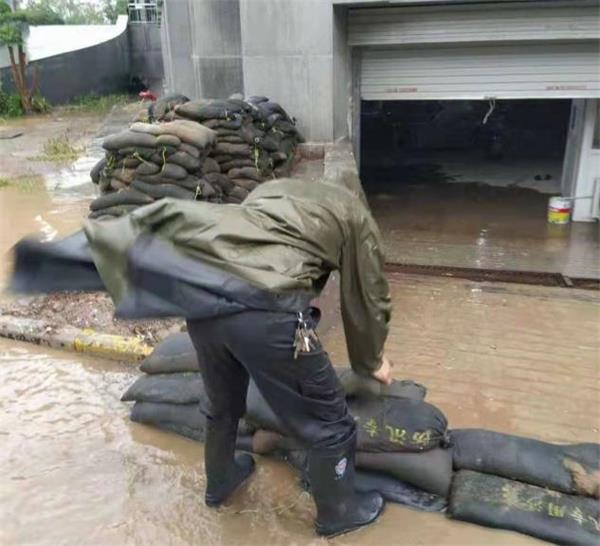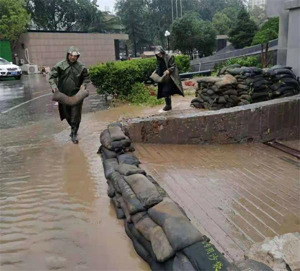 保安隊員冒著暴雨四處巡查客戶單位各排水口,疏通堵塞的下水道,讓雨水快速流過;利用防汛沙袋及時建立防汛墻阻止雨水倒灌進入地下停車場;對部分滲透入地下車庫的雨水進行及時清理。很快,隊員的有效處置措施,阻止了雨水漫入地下車庫,避免了客戶單位財產損失。