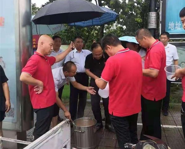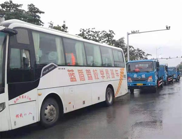 7月21日上午10時,藍盾駕校接到北關(guān)區(qū)政府指令后,立即組織學(xué)??购閾岆U應(yīng)急隊30名員工、3輛貨車、1輛大巴車,迅速趕到平原橋南側(cè)集合待命。
