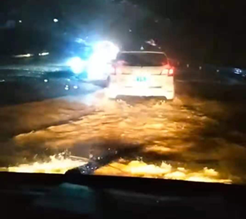 晚6點,突接中原銀行湯陰亞新ATM機,被淹告急,為了挽救人民財產(chǎn),中原銀行隊員方志林、白亮、魏鑫冒著風(fēng)險驅(qū)車前往,任務(wù)就是為了把淹沒在洪水中ATM里面的錢拉回來。前往的路上,無路可走,到處汪洋,司機白亮克服困難,涉水而行,晚上8點,趕到湯陰,走至湯陰火車站附近往南處的時候,路截斷了,水深到胸部,但距離ATM還有兩公里的路程,為了完成任務(wù),為了挽救人民財產(chǎn),請示領(lǐng)導(dǎo)后,決定涉水走路前進。方志林、魏鑫舉著槍和銀行人員手拉手冒著雨倘著水艱難的走到了ATM點,往返四公里,用將近兩個小時的時間完成了任務(wù)。因為雨天路上情況變化太大,為了給在湯陰的車探明路況,晚上九點,大隊長李艷軍和劉靜雨開車前往湯陰,尋找可行路線,歷經(jīng)重重困難,于10點左右兩車匯合,由于提前探明路況,返程時沒有遇到很大困難,返回到中原銀行時,是晚上11點半左右。