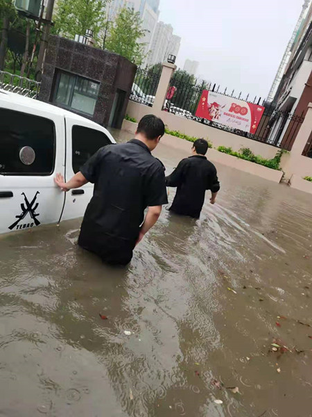 關(guān)鍵時(shí)刻,沙袋用完,大雨沒(méi)有絲毫停止的預(yù)兆,怎么辦?李艷軍和中原銀行領(lǐng)導(dǎo)商定:從綠化帶挖土。當(dāng)機(jī)立斷,帶領(lǐng)大隊(duì)人馬冒著大雨倘著水去裝土,一趟一趟,一袋一袋背回去,跌倒、滑倒立刻爬起來(lái),和時(shí)間賽跑,少一秒就意味著險(xiǎn)情的增大;由于洪水過(guò)大,污水井蓋被沖開(kāi),在搶險(xiǎn)中,方志林、趙勇掉入井中,及時(shí)被救了上來(lái),所幸沒(méi)有造成人員傷亡。沒(méi)人怕累,怕臟,雖然每個(gè)人都身心疲憊,但臉上都充滿(mǎn)著斗志。