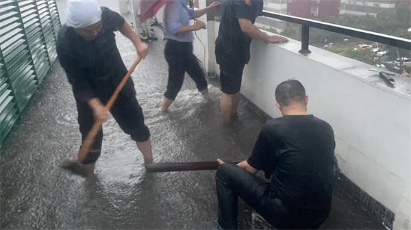凌晨三點(diǎn),看到雨越下越大,人防一大隊(duì)駐浦發(fā)銀行安陽分行崗立刻啟動(dòng)應(yīng)急響應(yīng),巡查銀行各樓層安全。當(dāng)查到四樓時(shí),發(fā)現(xiàn)電井有漏水,而且有越漏越大的趨勢,考慮到電井里全行的電源如果出現(xiàn)故障,整個(gè)銀行將癱瘓,保安隊(duì)員果斷停掉全行電源。在銀行辦公室宋主任和張行長帶領(lǐng)下,全體隊(duì)員迅速?zèng)_向四樓房頂,由于雨下的太大,這時(shí)的屋頂水已經(jīng)沒過膝蓋。如果不及時(shí)處理,將造成重大損失。但手邊沒有工具,大家只能用錘和鎬將墻上打洞及時(shí)排水。在猛烈的暴雨中,大家掄大錘,用鎬敲,全體隊(duì)員和銀行工作人員共同努力,靠手工在四樓后墻挖出七、八個(gè)洞,終于解除了險(xiǎn)情。