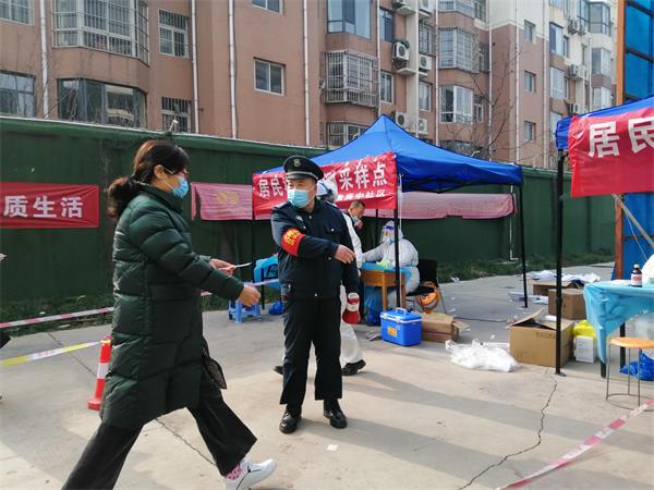2022年1月11日,整個(gè)安陽按下了暫停鍵,公交停運(yùn),學(xué)校停課,商鋪酒店關(guān)門歇業(yè),然而抗擊疫情的腳步一刻也不能停頓。人防二大隊(duì)根據(jù)北關(guān)區(qū)疫情防控工作需要,在接到公司指令后,在疫情防控形勢異常嚴(yán)峻、各崗位人員異常緊張的情況下,與兄弟大隊(duì)人防四大隊(duì)聯(lián)手,在副大隊(duì)長張海林的帶領(lǐng)下,第一時(shí)間抽調(diào)常文廣、李艷軍等10名保安員,前往盤庚中社區(qū),承擔(dān)了核酸檢測點(diǎn)的秩序維護(hù)任務(wù)。