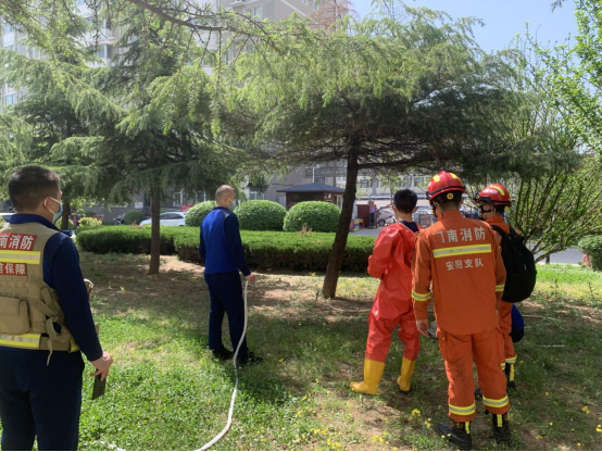 (圖為消防人員與物業(yè)聯(lián)手消滅馬蜂窩)