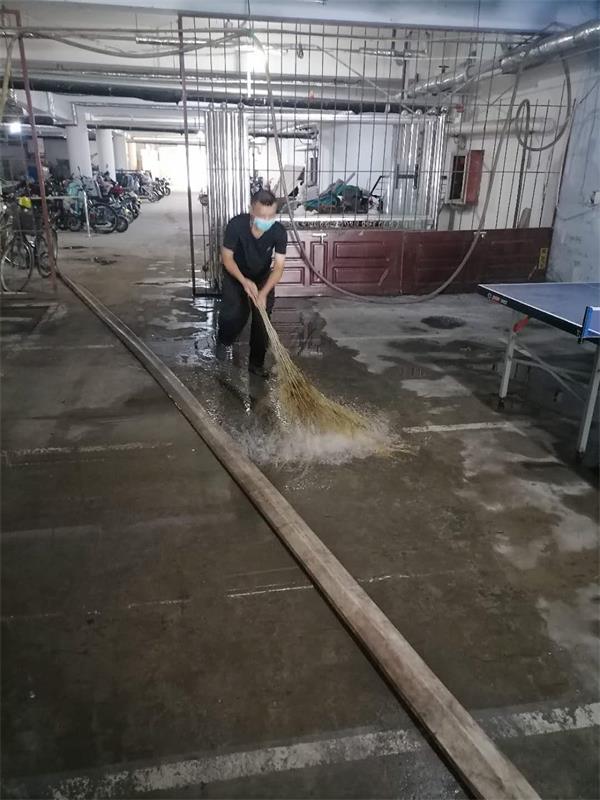 由于漏水面積較大,已經漫延到停車場廳,在搶救漏水的過程中,班長張建根及保安員劉濤、李勇,不顧個人安危,掃帚、水桶、抹布等工具齊上陣。清理完漏水時三人身上的鞋襪及衣褲均全部濕透。事后分行保安部經理對三人提出表揚,希望駐勤保安員將盡職盡責、吃苦耐勞的精神繼續(xù)發(fā)揚光大,鼓勵他們在以后的工作中更好地為駐勤單位財產安全保駕護航。