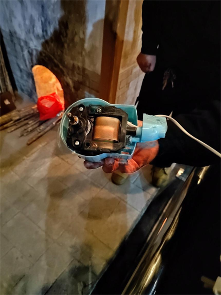 2023年1月6號(hào)中午12時(shí)10分,特保大隊(duì)派駐中國(guó)文字博物館女隊(duì)員袁仁杰在二樓南展廳巡邏時(shí),聞見一股燒焦皮子的味道,出于安全警覺性,她開始多方檢查,最終在臺(tái)階下找到源頭,原來(lái)是布景風(fēng)機(jī)線路老化短路造成。于是,袁仁杰第一時(shí)間上報(bào)了博物館安保部,并聯(lián)系電工人員進(jìn)行維修更換。