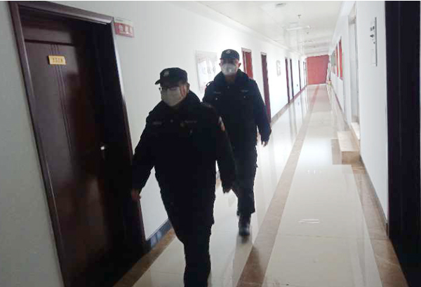 正在辦公樓內(nèi)巡邏的魏子翔聞?dòng)嵑?,立即趕來處理。他不厭其煩向來人講解客戶單位在疫情期間進(jìn)入單位的各項(xiàng)要求,并不卑不亢地說明違反要求后果自負(fù)。