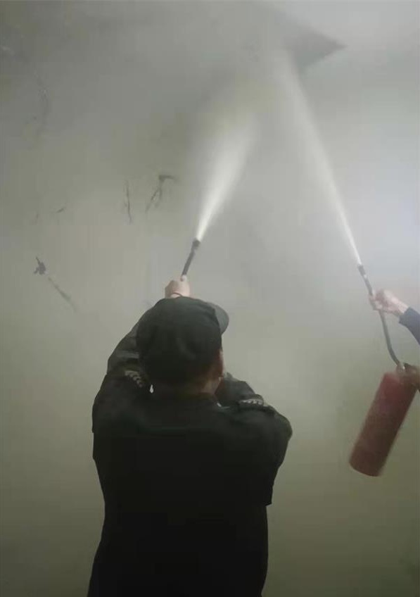 4月21日早上7點(diǎn)40分許,人防二大隊七中隊中隊長李伏林帶領(lǐng)保安員宮勝偉、趙雁貴正在文博源小學(xué)門口值勤。他們警惕地注視著周圍情況,守護(hù)師生安全,疏導(dǎo)門口車輛,迎接師生有序進(jìn)校。這時,二道門一位女老師忽然聞到一股刺鼻的膠皮味,隊員們聞聲立即四處查找異味的來源,發(fā)現(xiàn)后院食堂方向黑煙滾滾。不好,失火了!早上護(hù)校來到該校的副大隊長張海林立即指揮隊員向著火處沖去。李伏林率先操起滅火器同隊員來到餐廳著火處,邊通知相關(guān)人員斷掉電源和燃?xì)猓呁度霚缁稹?