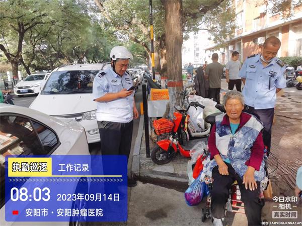 當天早上8時許,駐北關(guān)區(qū)巡防隊員高亮、王曌執(zhí)行路面治安防控任務(wù),當巡邏至洹濱北路腫瘤醫(yī)院門口時,看見一老人向路人招手,但沒有人搭腔。于是,他們趕過去查看情況。經(jīng)詢問,得知老人走失找不到回家的路。詢問其家人電話,家是哪里的,老人也說不明白。于是王曌便報告了110,等110到現(xiàn)場說明情況,移交給了民警處理。
