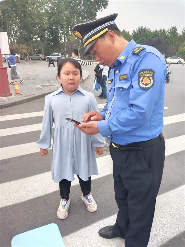 當(dāng)日中午12:25許,駐殷墟商魂廣場保安班班長郭國峰正在執(zhí)勤,發(fā)現(xiàn)有一個大約八歲左右的小女孩站在路旁哭泣,忙上前關(guān)切的詢問,原來是女孩和父母走散了。郭國峰問,你知道爸爸的電話嗎?小女孩說知道。郭國峰隨用自己的手機(jī)給其家人取得了聯(lián)系。并告訴他和小女孩的位置,同時匯報了帶班領(lǐng)導(dǎo)商鄉(xiāng)長。商鄉(xiāng)長邊拿起礦泉水讓小女孩喝,邊安慰她。