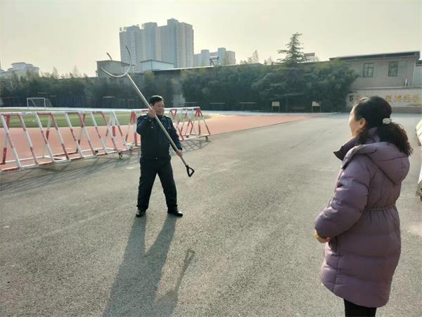期間,教育局領導詢問陳文斌保安器械都有什么,陳文斌馬上一一介紹保安八件套功能和使用,包括一鍵報警。隨后,局領導問他會不會使用器械,陳文斌現(xiàn)場展示了一套高質量的鋼叉操,動作標準,口號響亮,充分展現(xiàn)了洹河保安過硬的業(yè)務技能和良好形象,教育局領導們高高豎起大拇指,連連稱贊,直夸陳文斌就是四中的保護神。